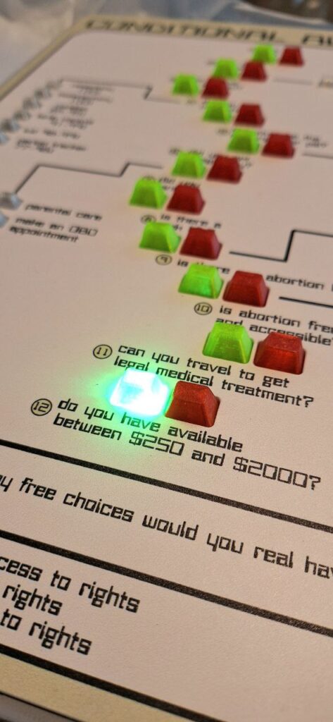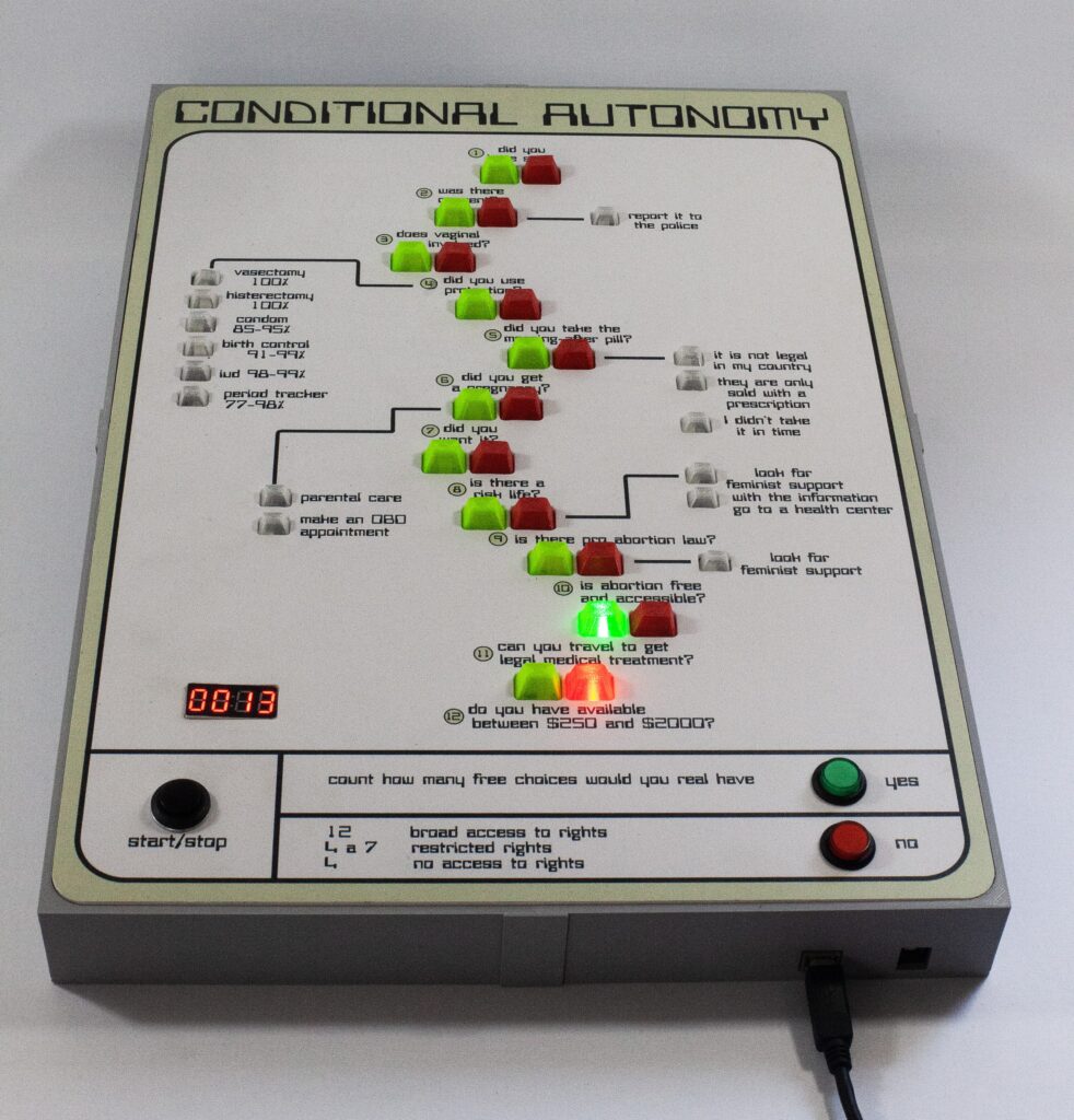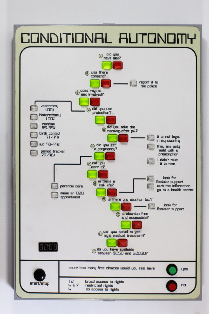 Un juego electrónico de preguntas y respuestas en el que cada participante debe enfrentarse a la tensión de decidir qué hacer ante un embarazo no deseado, teniendo en cuenta una serie de límites y variables temporales y contextuales.